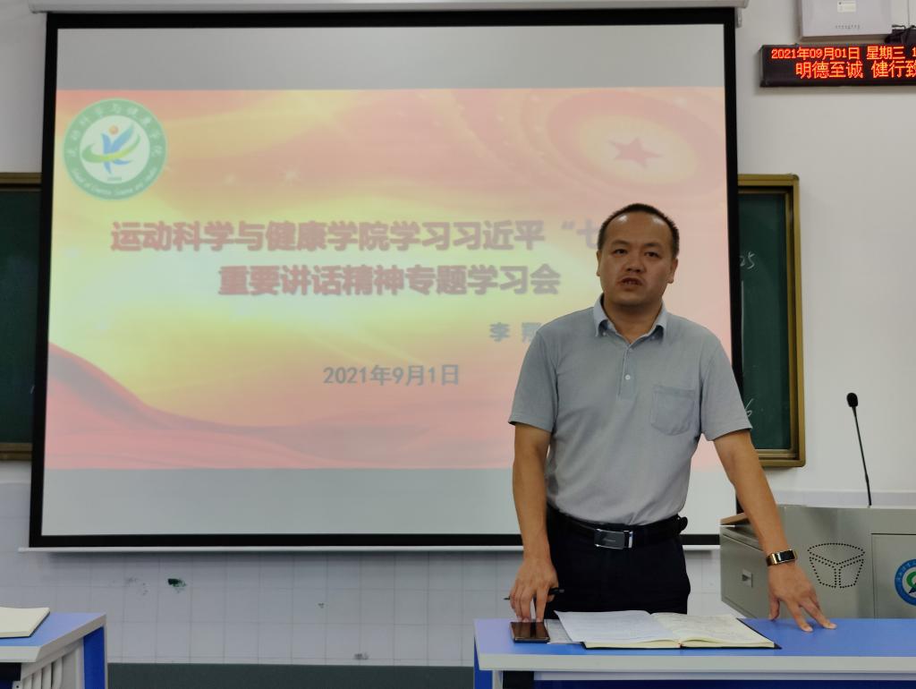 9月1日下午,运动科学与健康学院在四楼思政教室召开了学习习近平总书记“七一”重要讲话精神专题学习会,学院全体党员参加会议。会议由总支书记李翔主持。