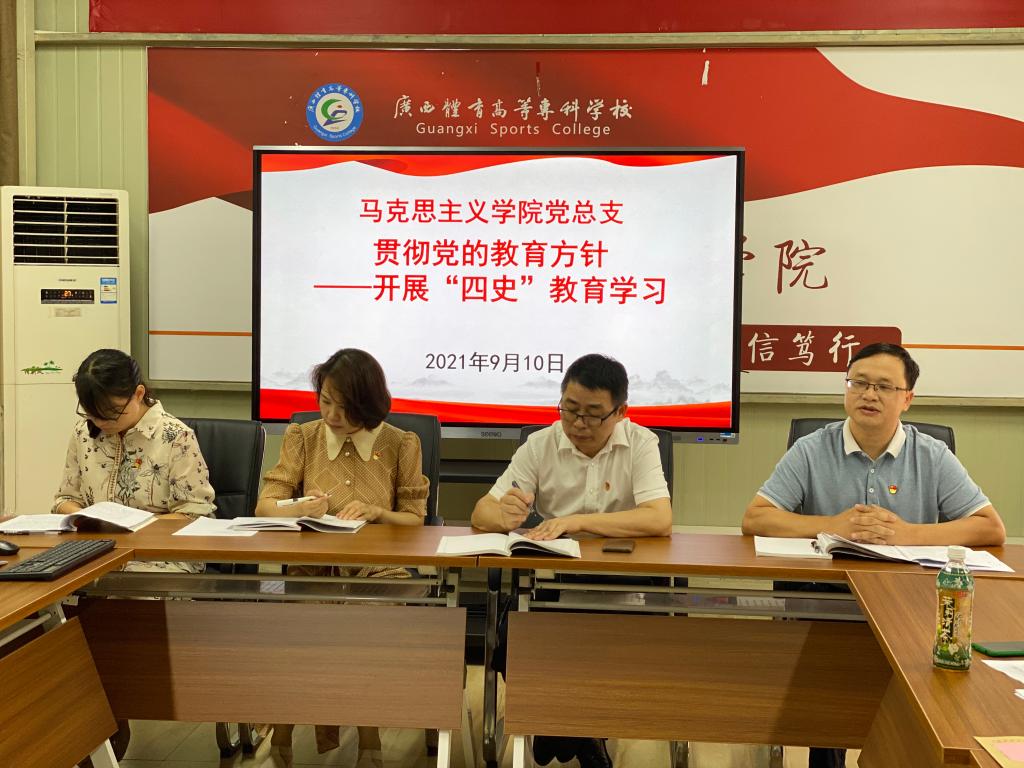 接着开展了贯彻党的教育方针——“四史”教育学习。学院党总支副书记、院长谢有长从习近平总书记“七一”重要讲话的重大意义、庄严宣告实现了第一个百年奋斗目标、中国共产党百年奋斗的光辉历程和伟大成就、伟大建党精神的深刻内涵和时代价值、以史为鉴、开创未来的根本要求五个方面进行了领学。