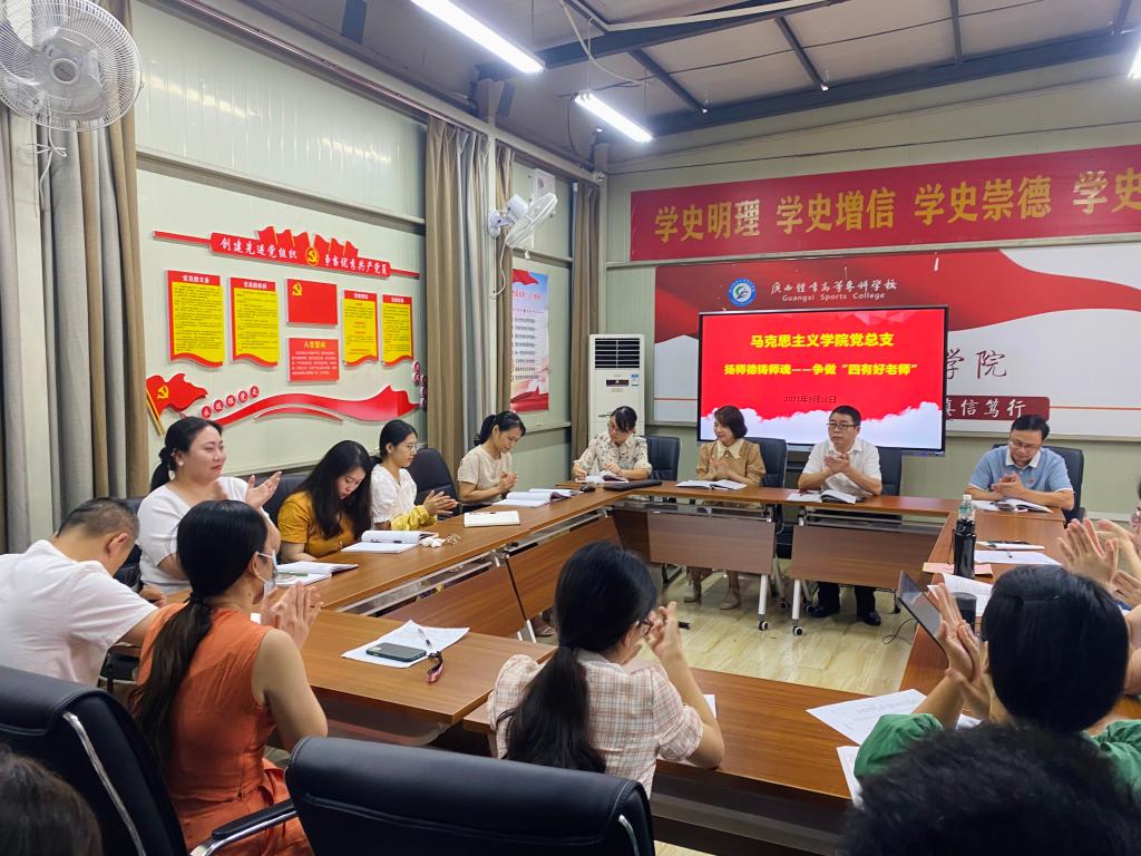 9月10日上午,结合爱体育(中国)2021年教师节庆祝活动方案,马克思主义学院党总支围绕“赓续百年初心 担当育人使命”的主题,以党日活动的方式庆祝教师节。马克思主义学院全体教师参加了活动,爱体育(中国)党委副书记李爱民以普通党员的身份参加了活动。活动由马克思主义学院党总支书记黎竹娟主持。