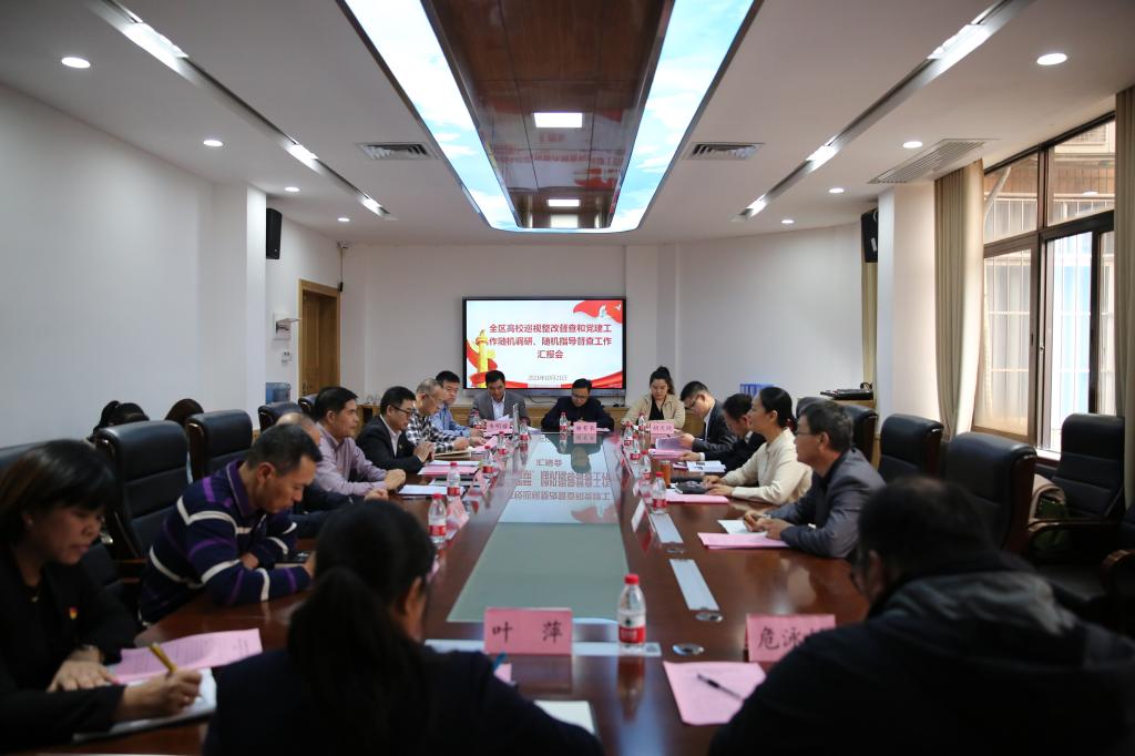 10月21日下午,全区高校巡视整改督查和党建工作随机调研、随机指导第十三调研组组长,广西交通职业技术学院党委副书记莫海燕等一行4人到爱体育电子官方网站开展督查调研工作。爱体育(中国)领导胡英清、李爱民、覃杨彬、覃世东、罗黎造以及相关二级单位负责人参加了汇报会。