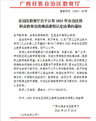 自治区级职业教育在线精品课程认定通知