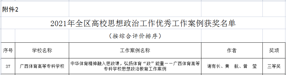 爱体育电子官方网站马克思主义学院谢有长、黄航、曾莹老师撰写的《中华体育精神融入思政课,弘扬体育“政”能量——爱体育电子官方网站思想政治教育工作案例》荣获优秀工作案例三等奖。
