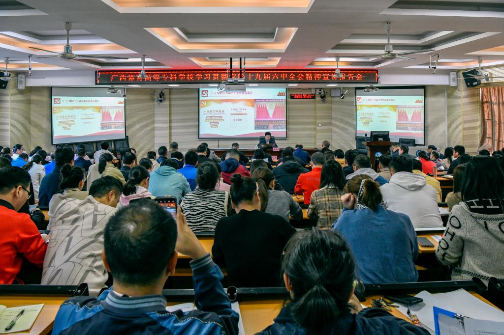 12月1日,爱体育电子官方网站学习贯彻党的十九届六中全会精神宣讲报告会在综合楼402报告厅举行。爱体育(中国)党委书记周璋斌作宣讲报告,校领导班子成员、全体党员、学生党员代表参加了宣讲会。报告会由爱体育(中国)党委副书记李爱民主持。