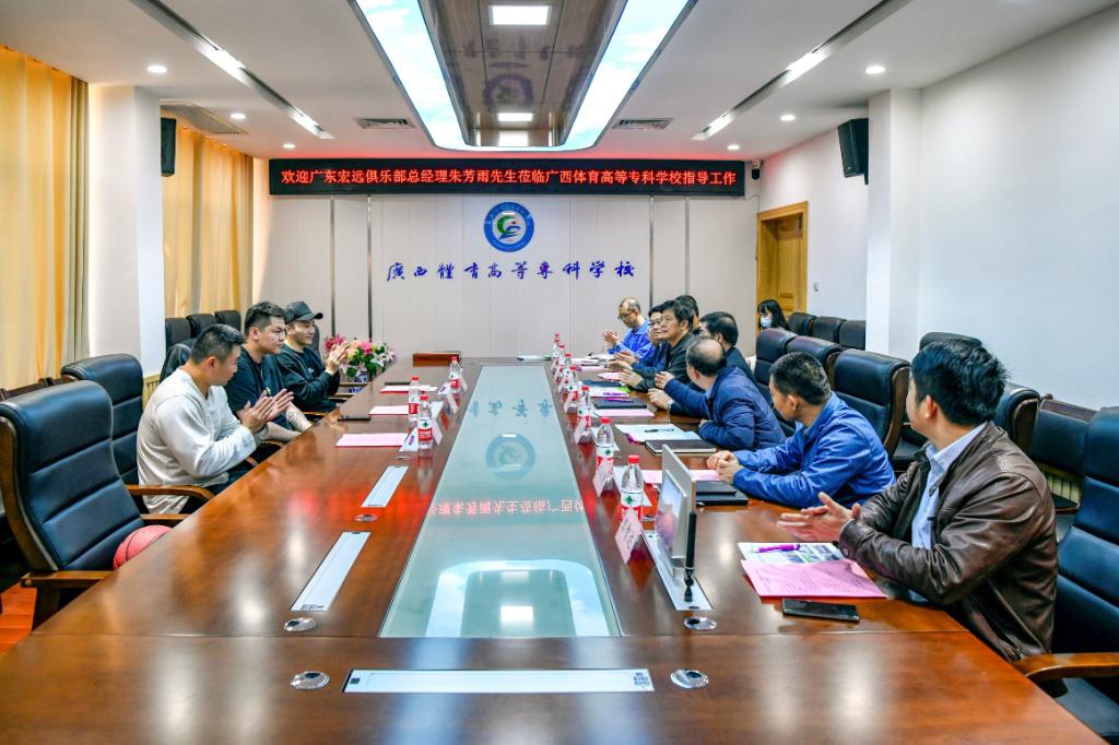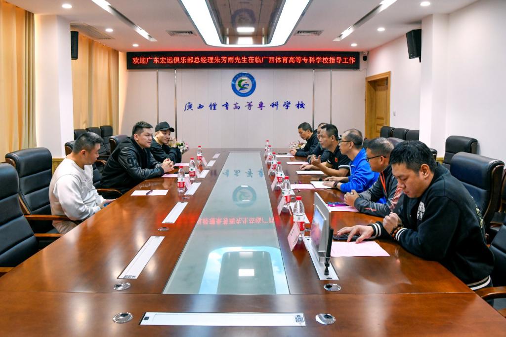 欢迎会后,朱芳雨团队与体育与教育院洽谈合作事宜,就篮球文化研究与推广中心、篮球产业学院的建立等意向进行了深入的交流,学院党总支书记覃琳就学院近年来开展教学改革和校企合作情况首先作了介绍,院长韦军把建立篮球文化研究与推广中心建设的工作设想作了说明。朱芳雨表示了合作意向,希望今后与爱体育(中国)加强交流,帮助学院在广西篮球人才教学、后备运动员培养、篮球教师和教练员队伍培育等方面发挥作用,同时利用好国家和广西的政策,加强与东盟国家的篮球国际交流,开展篮球文化的研究、推广和项目合作等。学院篮球教学训练团队代表一同参加了会谈。
