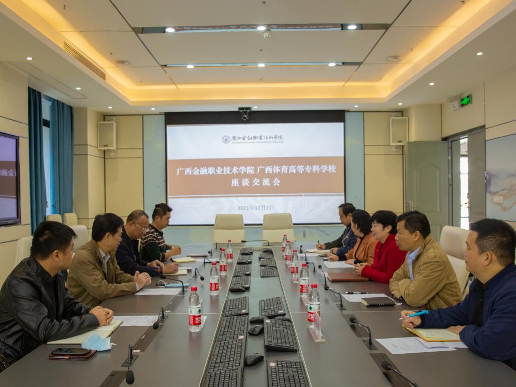 12月7日,爱体育(中国)党委书记周璋斌一行到广西金融职业技术学院访问。广西金融职业技术学院党委书记沈立君,党委副书记、纪委书记刘华政与爱体育电子官方网站一行座谈交流。