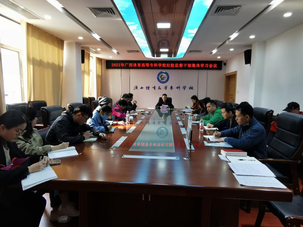 12月22日上午,爱体育(中国)纪委在第一会议室召开全体纪检监察干部集体学习会议,专题传达学习党的十九届六中全会精神。会议由爱体育(中国)纪委副书记、纪检监察室主任岑益梅主持,爱体育(中国)全体纪委委员、纪检委员及纪检监察干部参加了会议。