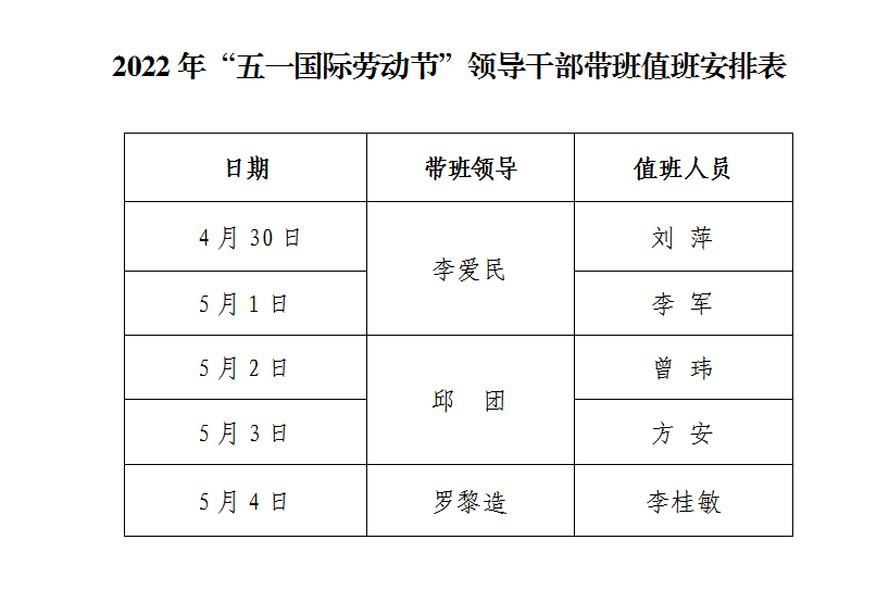 附件:2022年“五一国际劳动节”领导干部带班值班安排表