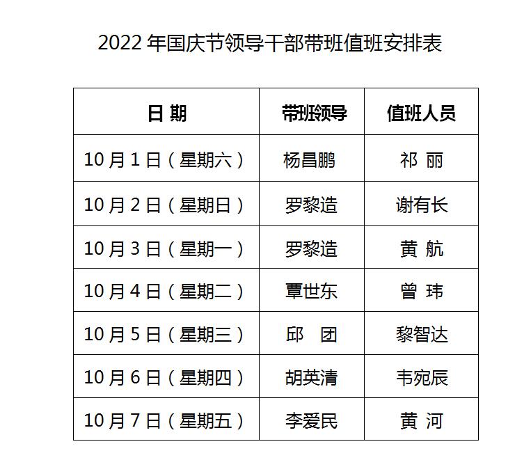 附件:2022年国庆节领导干部带班值班安排表