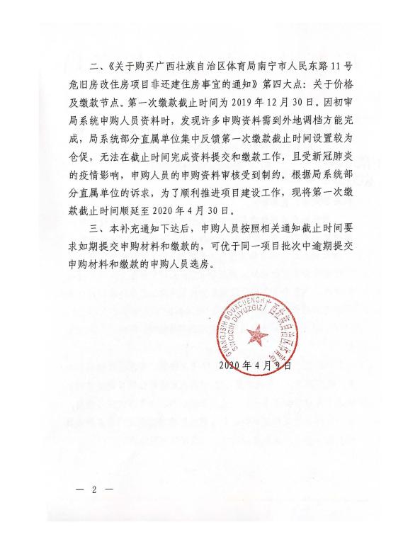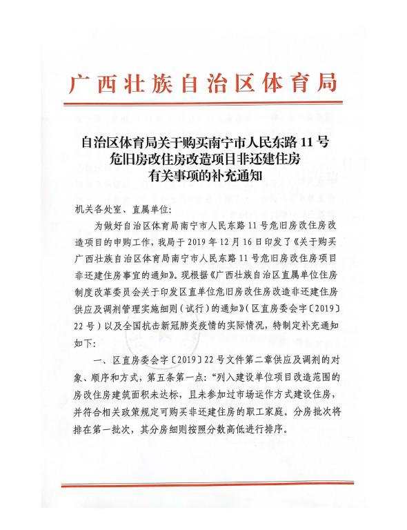 自治区体育局关于购买南宁市人民东路11号危旧改住房改造项目非还建住房有关事项的补充通知