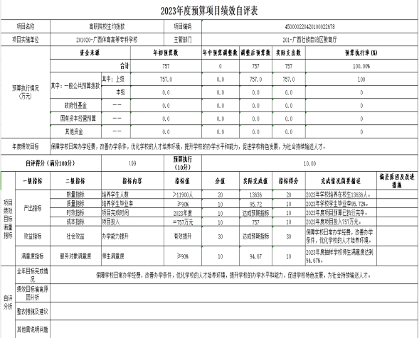 高职院校生均拨款项目自评情况:根据年初设定的绩效目标,