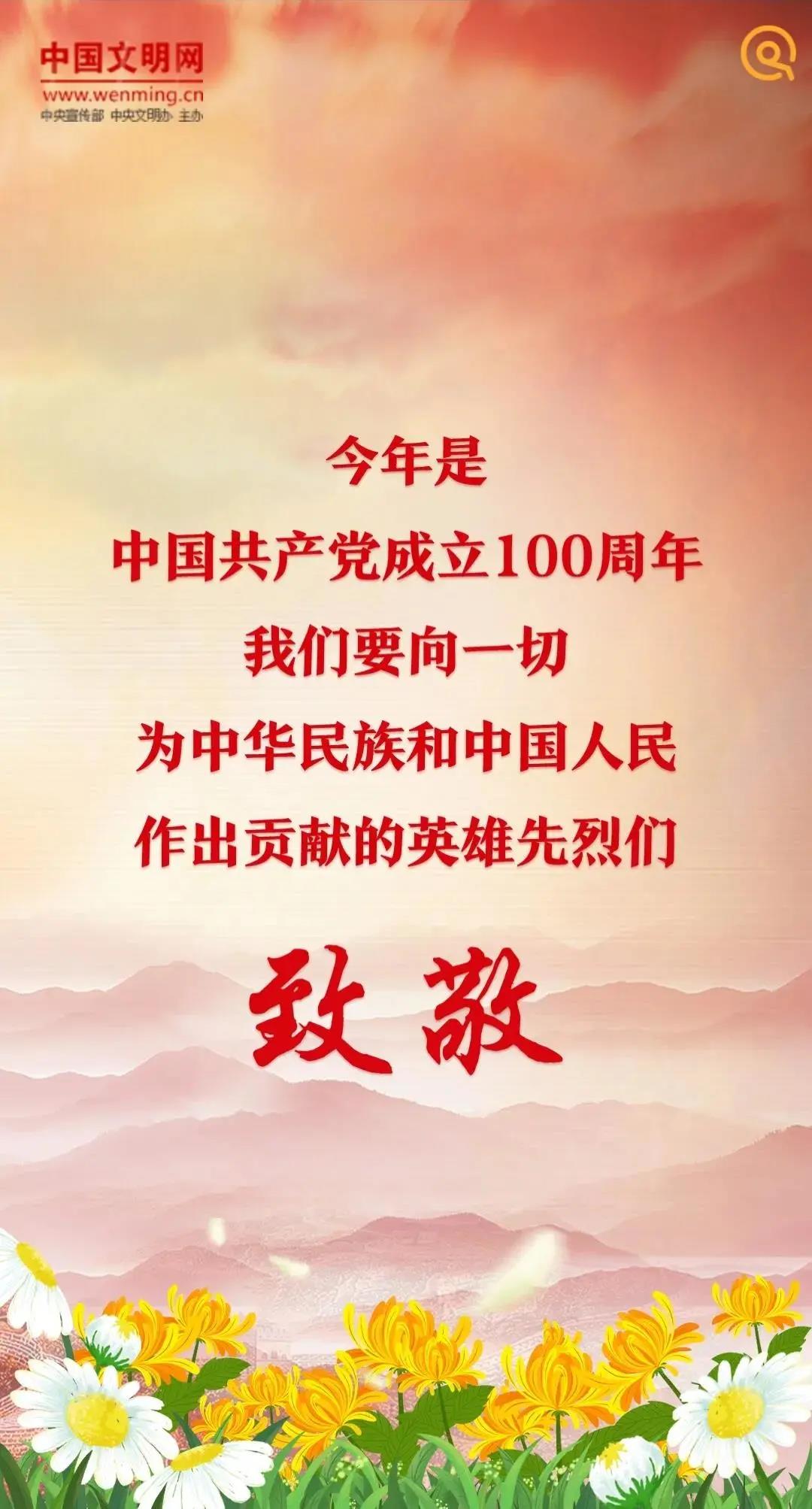 今年是中国共产党成立100周年,我们要永远铭记为民族独立、人民解放和国家富强、人民幸福作出巨大贡献和牺牲的英雄烈士,要深刻认识到红色政权来之不易、新中国来之不易、中国特色社会主义来之不易。