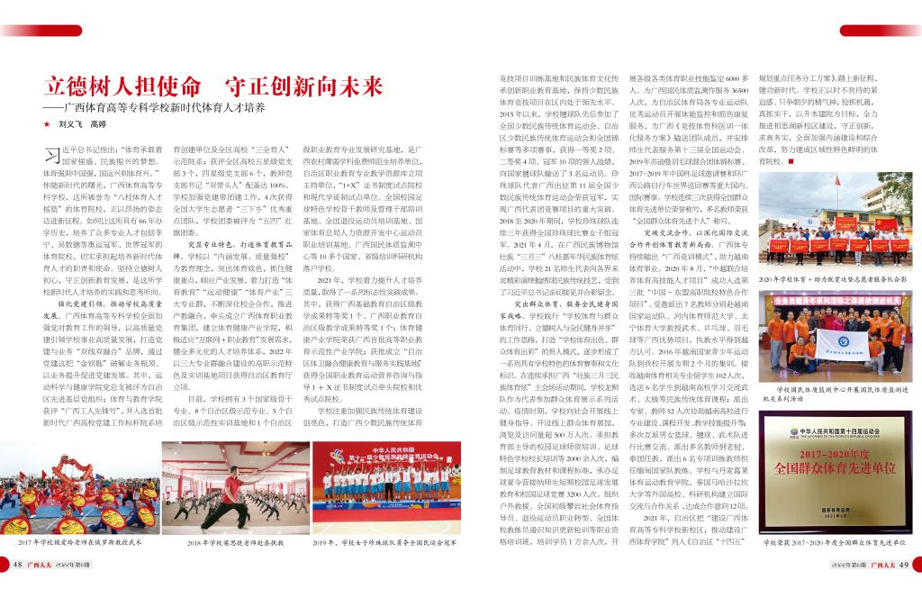 2022年6月,《广西人大》第六期刊发爱体育电子官方网站刘义飞、高婷老师题为《立德树人担使命,守正创新向未来》理论文章。