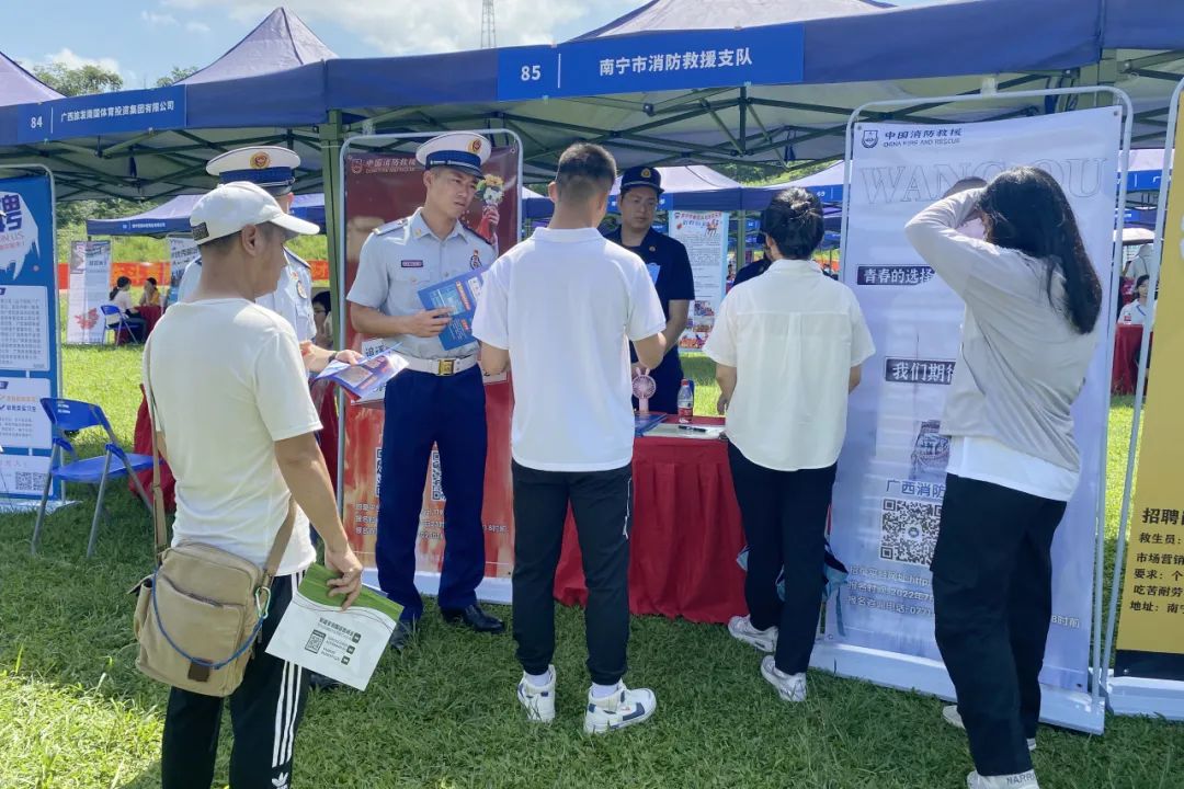 其中,文化、体育行业企业占招聘单位的36%,岗位需求人数868人。招聘会提供的优质岗位受到求职者关注,如南宁市消防救援支队,消防员岗位需求人数为100人,不少毕业生前来咨询面谈。当天,主办方还设立了线上“直播带岗”专区,为没能到现场求职的毕业生提供线上推介岗位的就业服务,吸引26.9万人次观看。