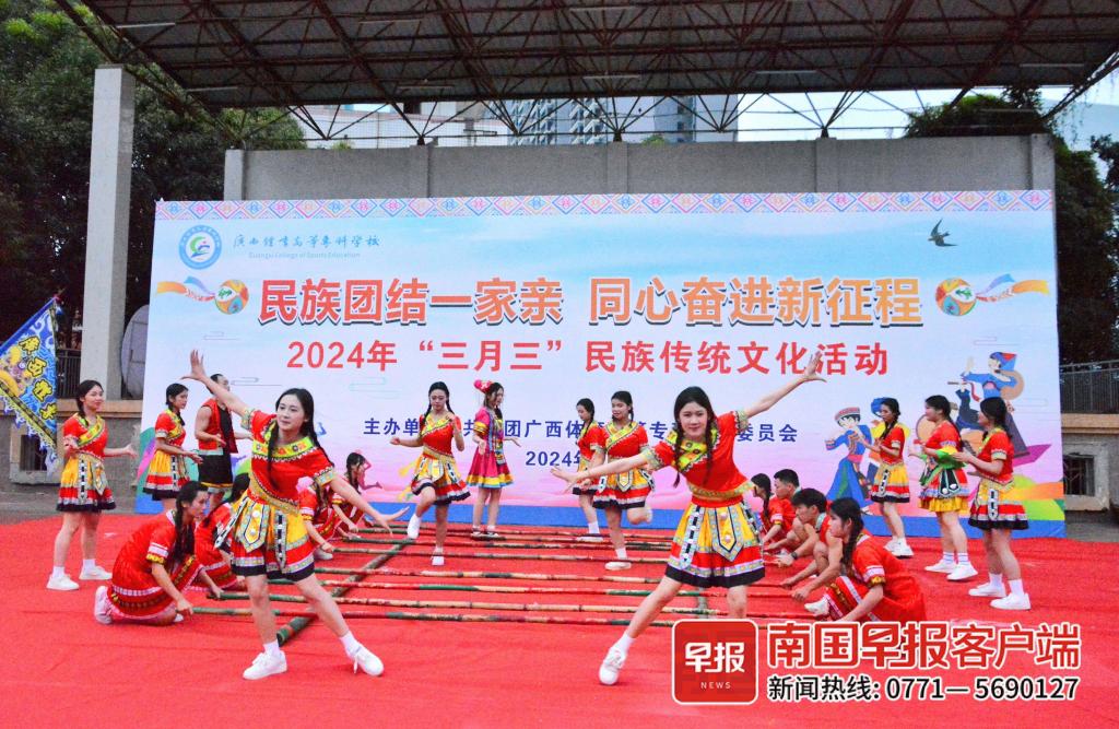 舞龙舞狮、壮拳展示、山歌对唱、民族服装秀、竹竿舞……4月9日下午,爱体育电子官方网站长堽校区的田径场上热闹非凡,“民族团结一家亲 共同奋进新征程”2024年“三月三”民族传统文化活动正在举行。