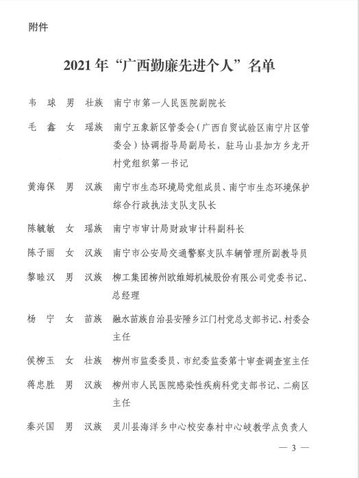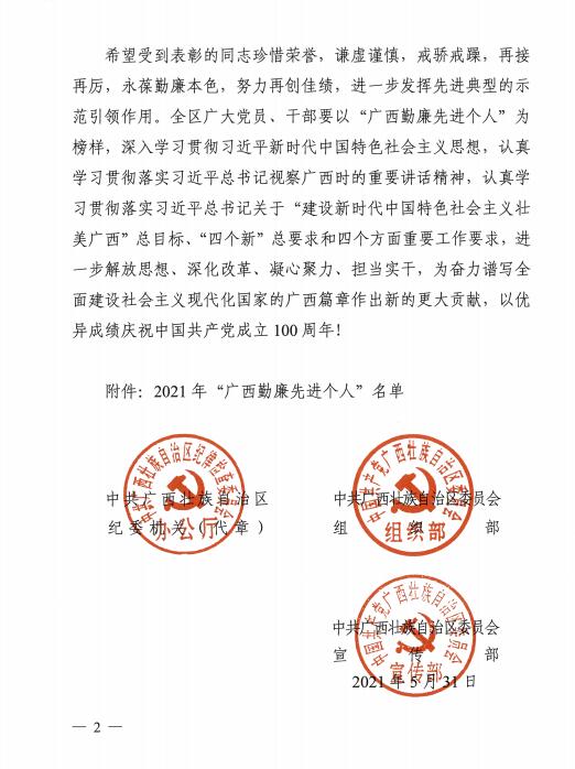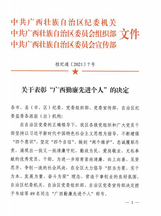 关于表彰“广西勤廉先进个人”的决定