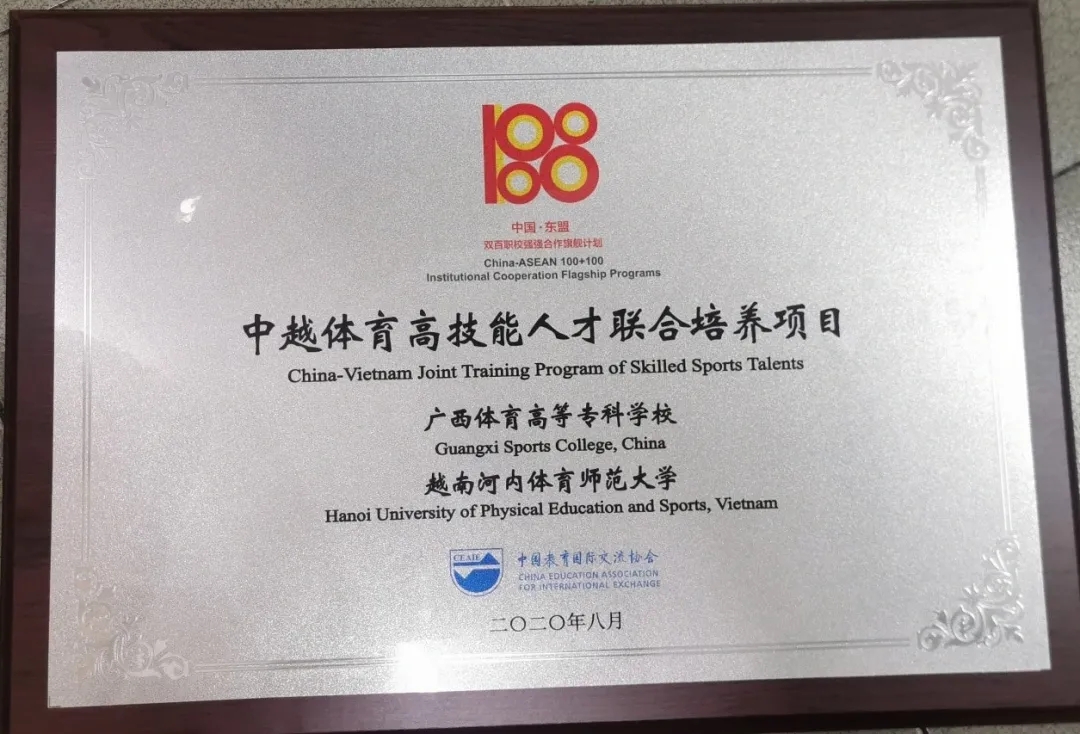 该校坚持服务东盟国家,输出广西竞训模式,充分发挥广西竞技体育的特色优势,多次派出专家教练赴越南、缅甸、新加坡等执教其国家队体操、武术、举重、游泳等项目,形成“体专模式”,推动职业教育国际化。