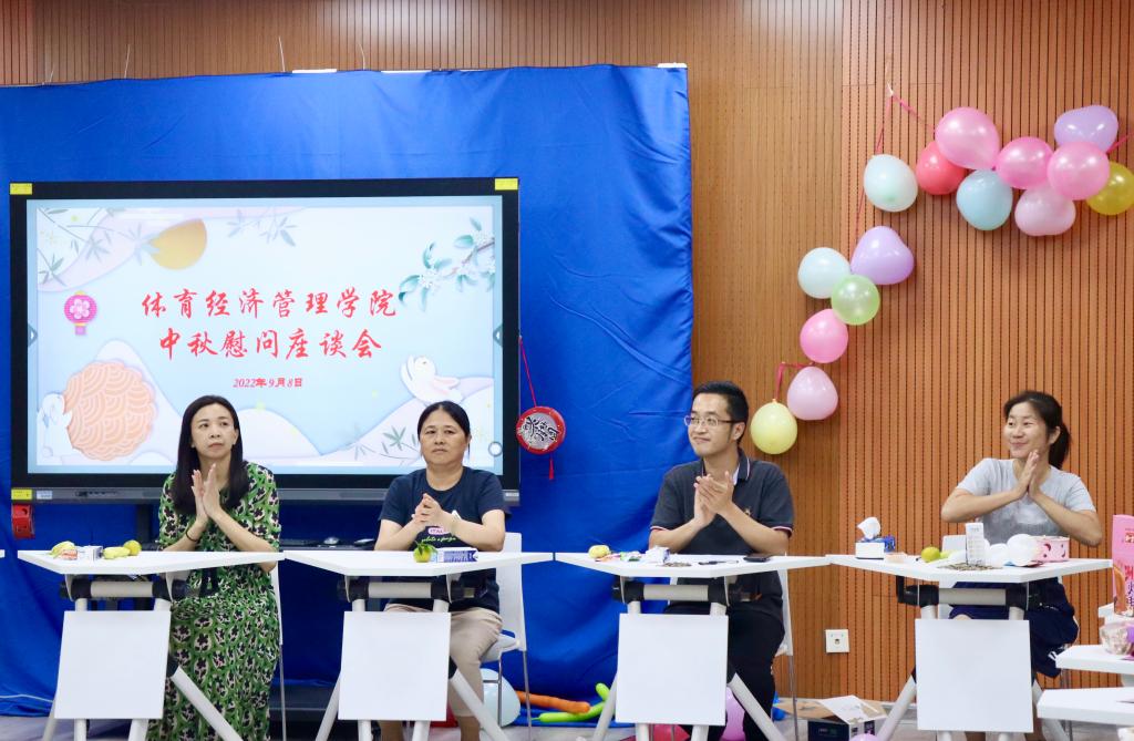 中秋节来临之际,为了营造以校为家的温馨情怀,增强师生凝聚力,体育经济管理学院于9月8日晚上在长岗校区开展2022年中秋座谈慰问活动。学院领导班子、教师代表、2021级学生参加了此次活动。