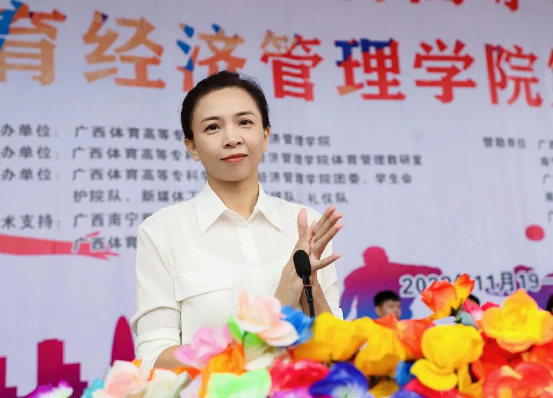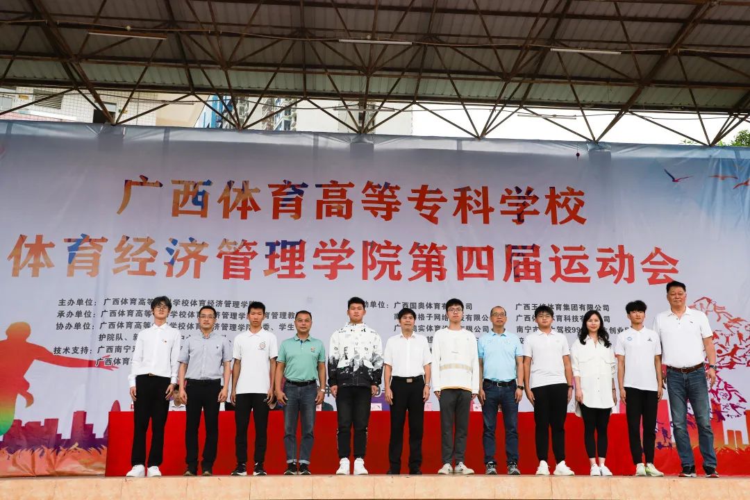校长胡英清、体育与教育学院院长韦军、体育健康产业学院副院长张忠、校团委副书记韦宛辰、我院院长方安、党总支副书记祁丽、副院长杨扬、副院长谭翰哲、原国家篮球队主力二中锋、现广西民族大学男子篮球总教练黄云龙、广西篮球协会副主席王勇、南宁市格子网络科技有限公司经理戎赞嘉、南宁市迈越软件有限责任公司工程师助理黄静宇、广西启航体育用品销售有限公司董事长曾宪富、广西玉峰体育集团有限公司董事长王玉峰、广西体健体育科技有限公司董事长胡志荣、南宁市广大驾校999大学生创业团队负责人韦源、校园饱胃创始人冯水鑫出席运动会暨专业实践展示主题活动开幕式。