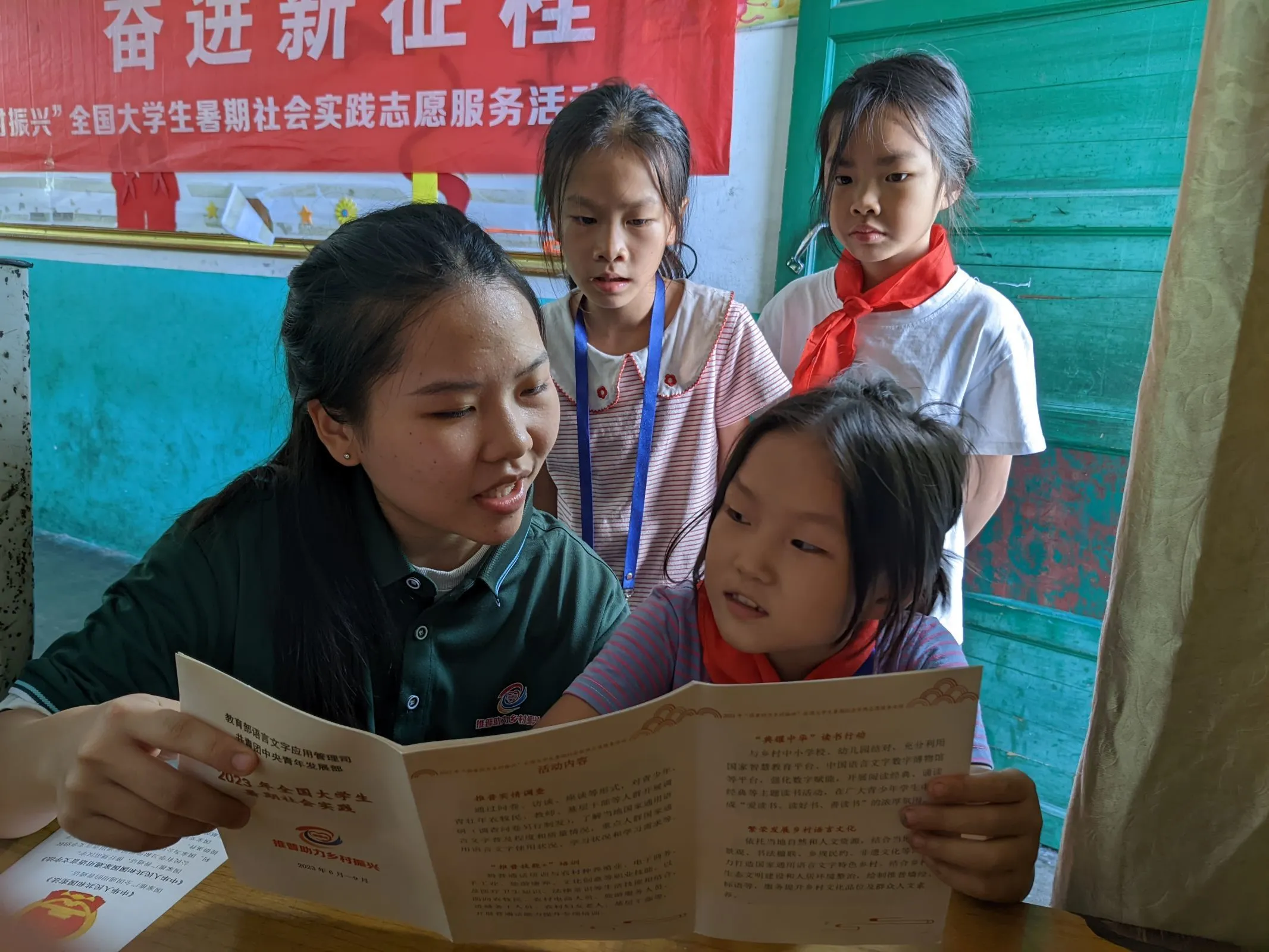 志愿服务队成员带领小朋友们学习普通话