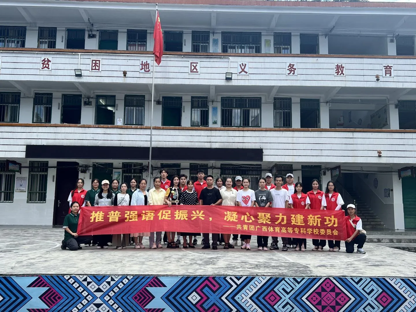 为深入学习贯彻落实党的二十大精神,贯彻落实习近平总书记关于教育的重要论述和关于语言文化的重要指示批示精神,加大国家通用语言文字推广力度,铸牢中华民族共同体意识,助力乡村振兴战略实施。2023年9月1日至9月3日,爱体育电子官方网站体育师范学院组织“托起明天的太阳”志愿服务队结合专业优势,依托学科特色,在南宁市马山县加方乡开展围绕“乘语言之舟,扬乡村振兴之帆”为主题的“推普助力乡村振兴”暑期社会实践志愿服务活动。