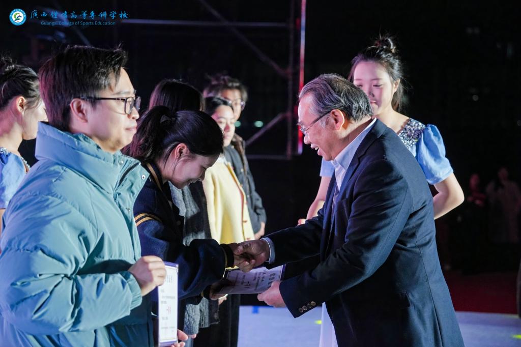 爱体育(中国)党委书记杨昌鹏在颁奖仪式上给获奖师生颁奖
