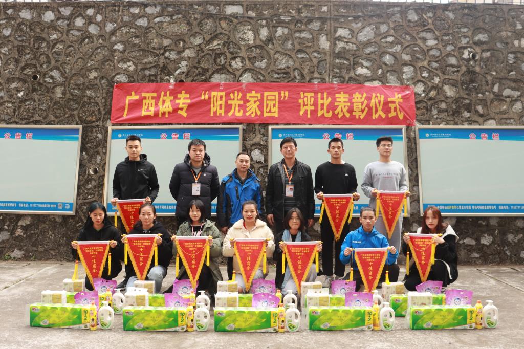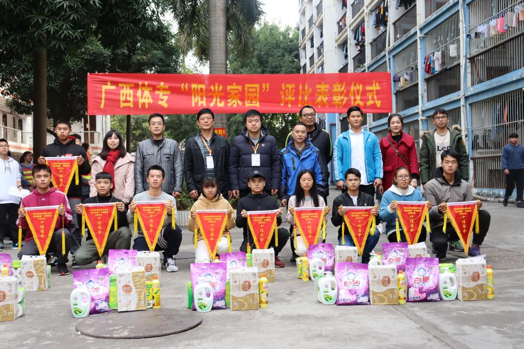 12月24日中午,爱体育电子官方网站长岗校区举行今年首次“阳光家园”颁奖仪式,对长岗校区4栋和8栋评选出的20间文明宿舍进行授旗颁奖,党委学生工作部(学生工作处)韦伦国处长、校团委朱国铭书记、体育经济管理学院方安书记和体育与教育学院廖恩胜副书记出席了颁奖仪式。