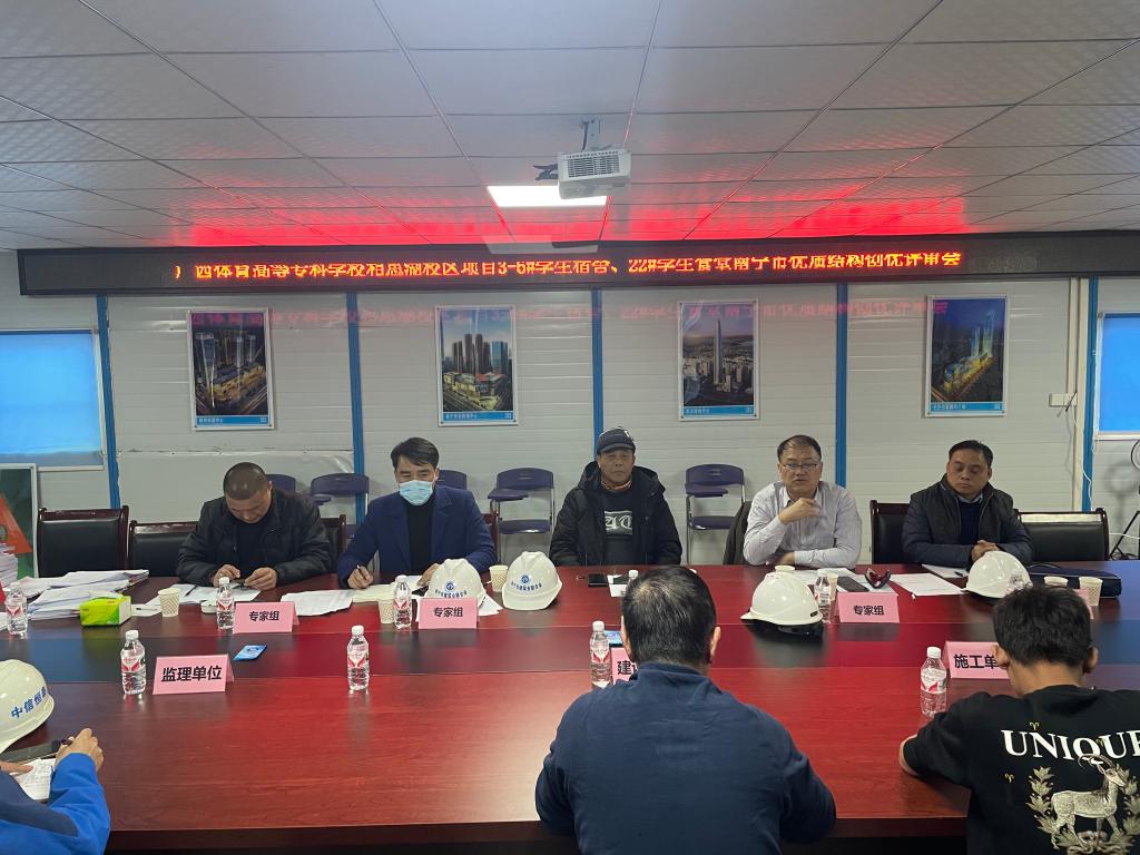1月13日下午,南宁市建筑业联合会会长李宗泽带领评审组一行五人爱体育电子官方网站相思湖校区项目,就项目3-6#宿舍及食堂申请南宁市建设工程优质结构奖召开评审会,并进行现场核查,新校区办、监理部门和总承包单位相关人员参加。