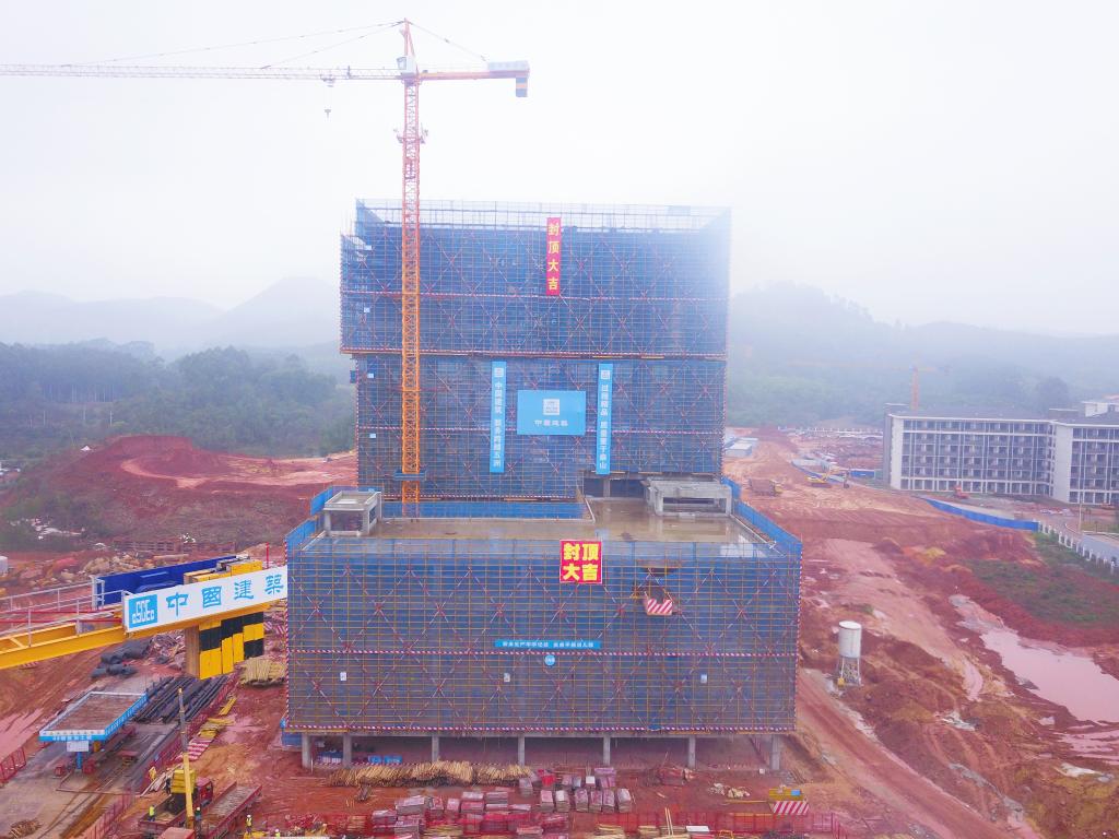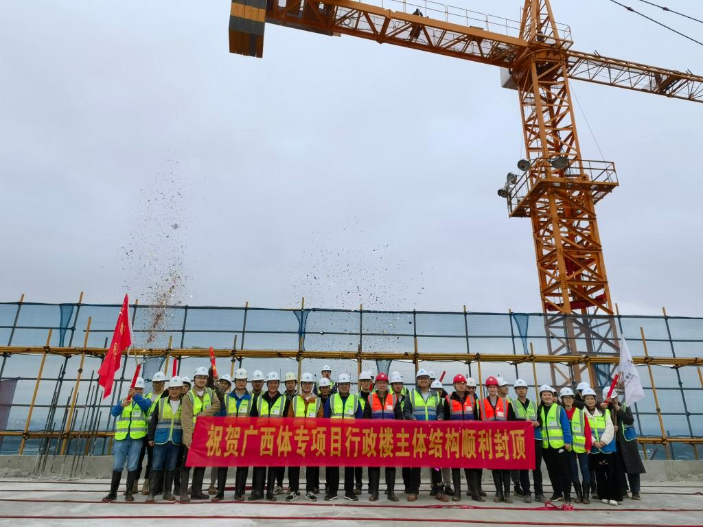 1月24日上午,爱体育电子官方网站相思湖校区项目行政办公楼、体测中心顺利实现主体结构封顶。