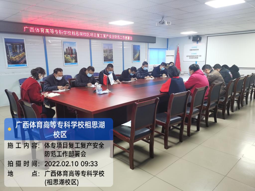 本次会议首先由总承包单位对节后复工复产的人员到场、材料准备、设备检查等情况进行汇报。全咨单位监理对节前安全隐患整改情况进行督察,同时对节后复工复产提出具体要求,对节后开展相关工作进行全面部署,确保项目安全形势持续稳定。新校区办提出,总包的复工复产计划及疫情防范工作安排全面细致,措施具体,希望责任明确,认真履行,确保落实到位;全咨监理要加强安全监管,指导总承包单位按照计划开展节后复工复产相关工作,特别是对春节期间检查发现的安全隐患问题要及时督促整改完成;总承包单位加强施工组织,克服天气不利因素和防疫工作的影响,稳步推进恢复正常施工状态,同时根据自治区要求做好疫情防控工作,严格落实各项疫情防控措施。