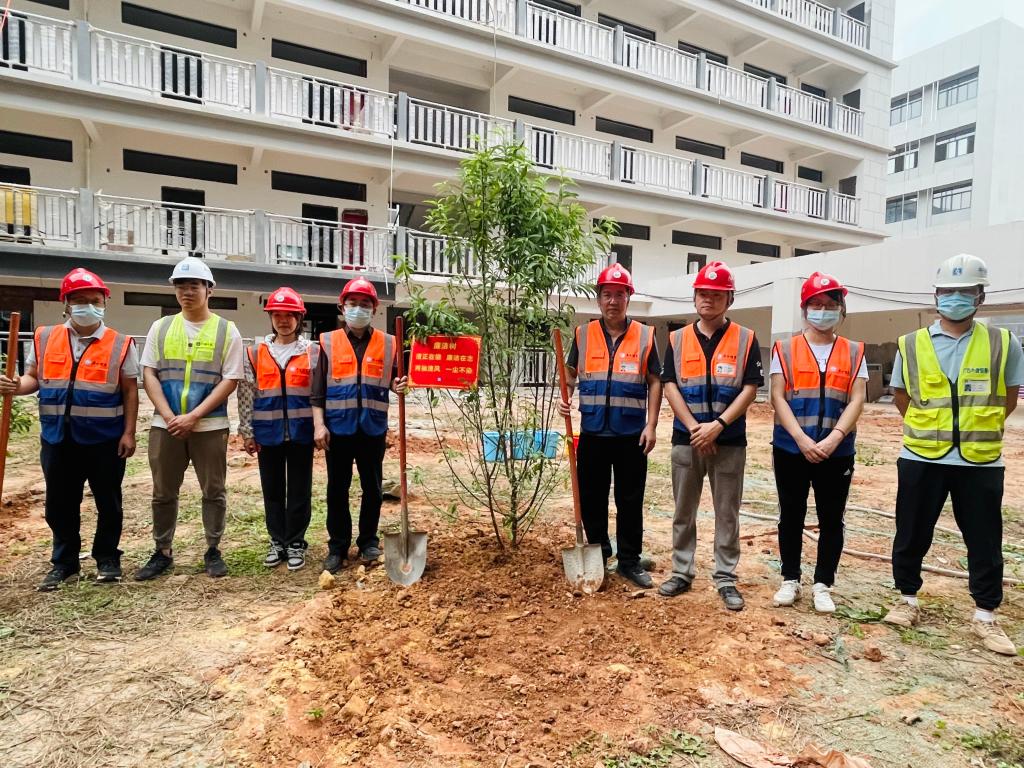 随后,全体人员到项目工地进行实地参观,并到2号学生宿舍楼中央进行植树活动。活动结束后,大家纷纷表示,此次主题党日活动非常有意义,也对未来入驻新校区充满了期待。