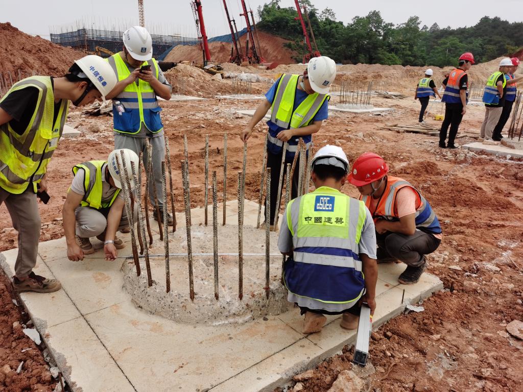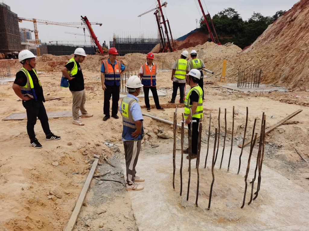 2022年 4月28日,爱体育电子官方网站相思湖校区项目组织开展项目行政办公和科技实训楼、大学生活动和体质检测中心主体结构,以及学术交流中心、教师公寓桩基质量验收。新校区办、全咨单位监理部、总承包单位、设计单位、勘察单位等相关负责人参加。验收工作首先在项目第一会议室召开验收前工作布置会,由全咨单位总监理工程师宣布验收程序,核查参加人员,明确验收要求,并按验收内容对参加人员进行分组。本次验收分为实体观感组、实体实测实量组、资料检查组,各组分别对各单体进行观感质量检查、实体构件实测实量、质量控制资料、安全和功能检验资料进行检查。