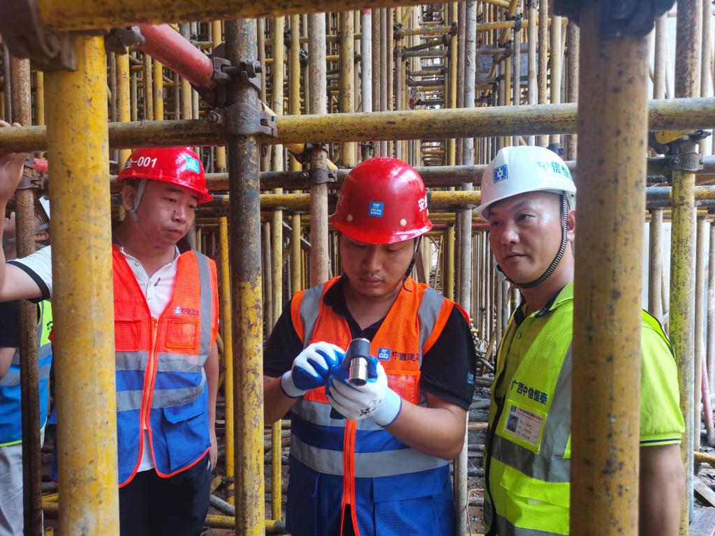 此次验收重点对高支模架立杆间距、纵横向水平杆搭设高度、纵横向扫地杆离地高度、纵横向扫天杆离板底高度、剪刀撑数量和距离、钢管和扣件外观质量及扣件扭力值等方面进行了全面检查验收。验收组根据项目综合训练馆高支模论证方案及相关规范要求进行了细致的现场检查,一致同意通过验收,并对验收情况进行了总结,要求总承包单位针对验收发现问题进行限时整改,同时做好自查自纠工作。