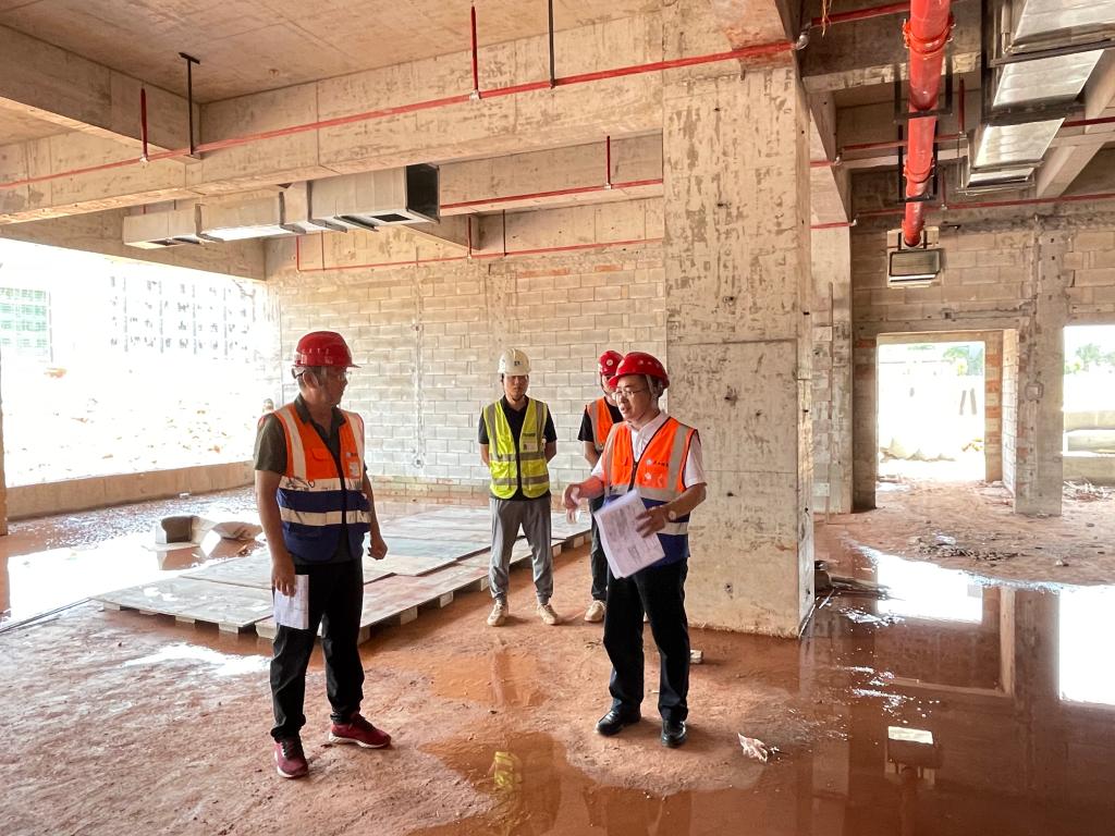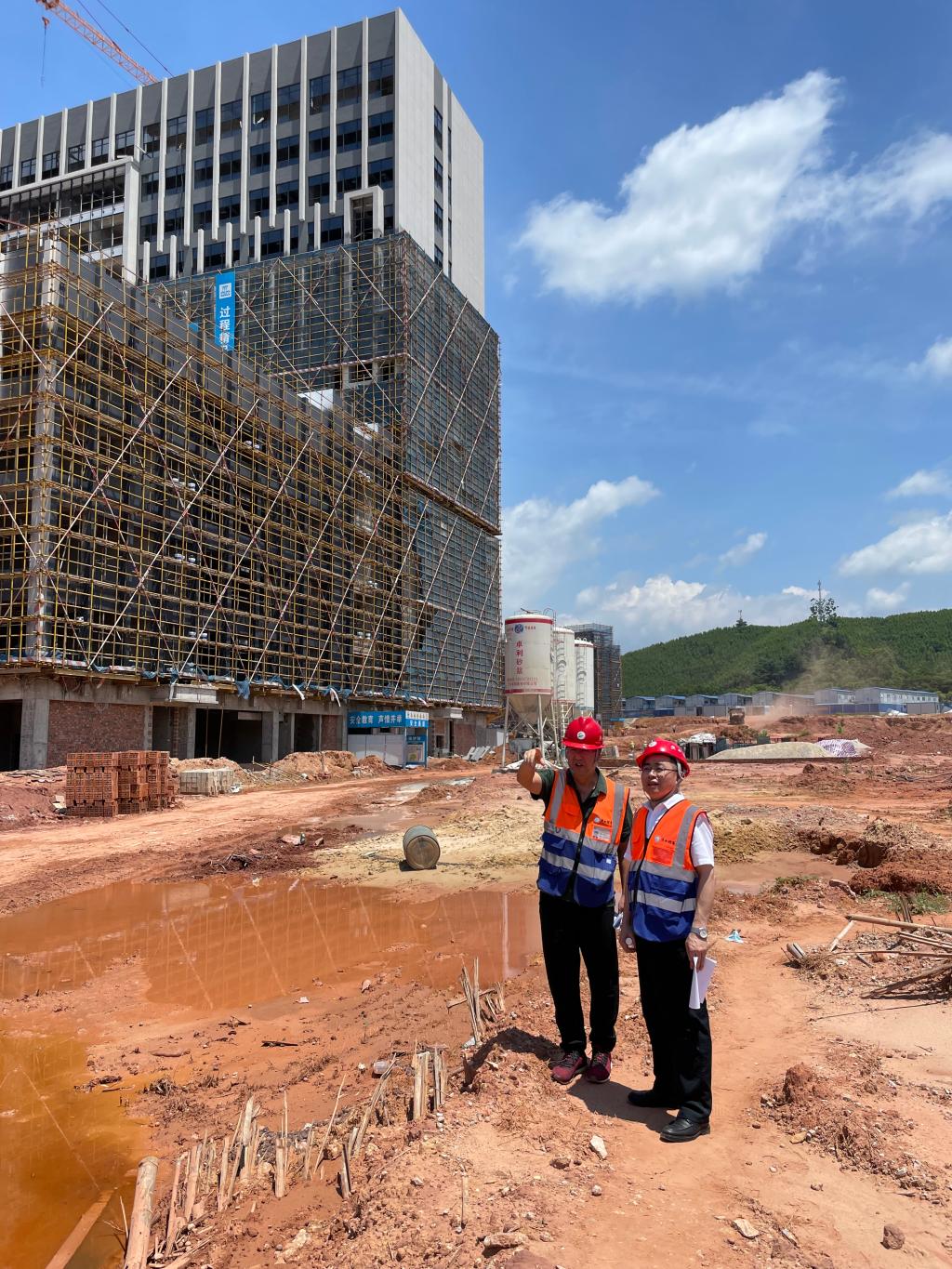 6月23日,爱体育(中国)党委副书记李爱民到相思湖校区项目工地视察,为爱体育(中国)新校区建设校史馆事宜进行实地考察,新校区办全体人员陪同。