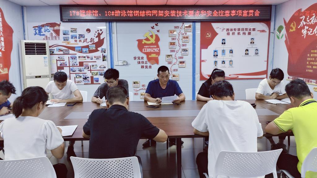 爱体育电子官方网站相思湖校区项目游泳馆屋面起步网架已基本搭接完成,即将进行吊装作业。为做好现场安全质量监管工作,8月4日下午,项目全咨单位监理部就屋面网架施工和吊装的施工组织管理、质量技术控制要点和安全措施规范等方面开展了内部专题宣贯会,爱体育电子官方网站在项目实习及临时聘用的4名学生也踊跃参加,以丰富专业知识、提高职业技能和增强现场管理能力。此次宣贯,有针对性地提高了爱体育电子官方网站相思湖校区项目现场监理人员的业务能力,为确保游泳馆主体最后一道工序安全、有序、顺利完成提供了技术保障。