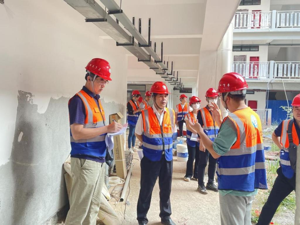 胡英清校长一行先后进入项目教学实验综合楼、学生宿舍楼、食堂、图书馆、学术交流中心、行政办公和科技实训楼、综合训练馆、篮球馆等单体,深入了解各类功能用房实施情况,组织各部门对“二装”方案及预算现场查漏补缺,并现场讨论和确定各部门提出的需重点解决的问题。