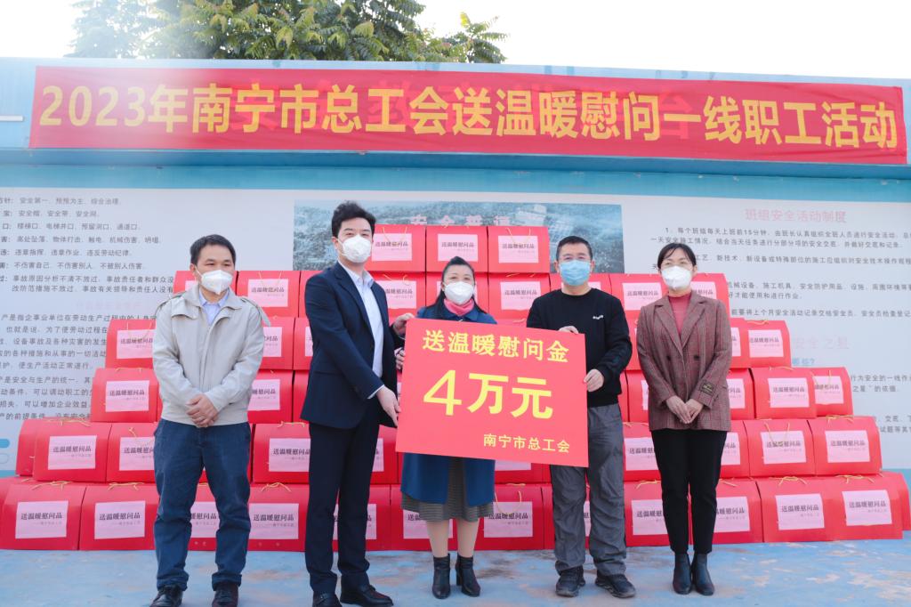 活动中,刘副主席亲切慰问在场职工代表,关心他们的工作、生活、家庭状况,并致辞感谢一线建设者的辛勤付出,祝愿大家身体健康、节日快乐。同时刘副主席代表南宁市总工会赠送慰问金和慰问礼品。