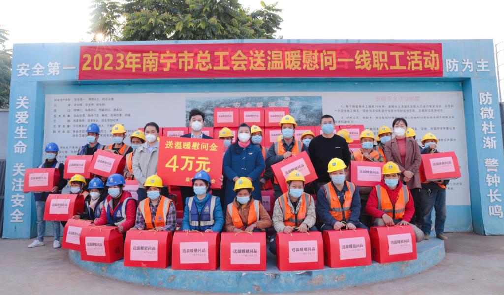 建设单位衷心感谢南宁市总工会对广西体专相思湖校区项目建设的支持和对一线建设者的关心和爱护,下一步,将始终不忘初心,保持奋进姿态,确保项目如期建成。