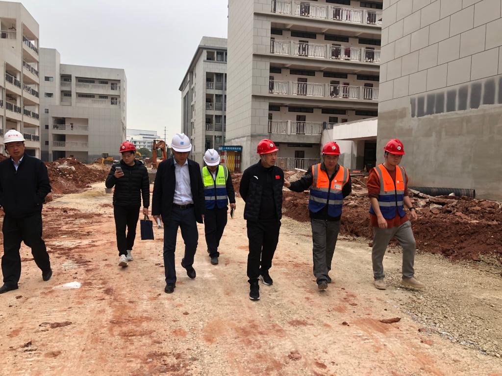 2月3日上午,自治区体育局重大办陆学杰处长一行3人到爱体育电子官方网站相思湖校区督察调研项目推进情况。新校区办、全咨单位和总承包单位相关负责人陪同。调研组首先现场检查了由学生宿舍、教学楼及食堂组成的B地块收尾情况,并对综合训练馆、篮球馆、游泳馆的设计和建设情况进行具体调研。