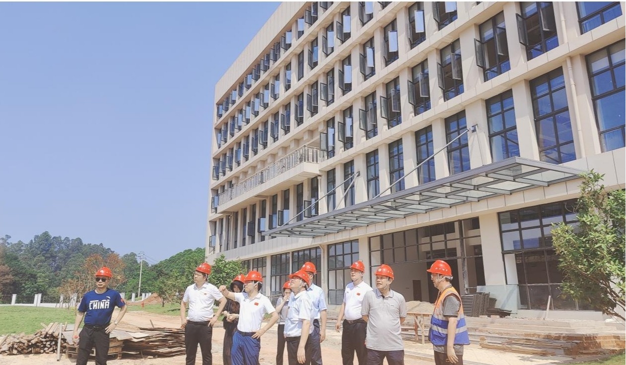 5月17日上午,湖南体育职业学院党委书记谭焱良一行6人到广西体专相思湖校区调研学习,爱体育电子官方网站杨昌鹏书记、覃世东副校长、各部门相关负责人接待,并与调研小组一同前往现场,实地考察了学生宿舍、食堂,图书馆,教学楼,交流中心、教师公寓等单体分部分项。