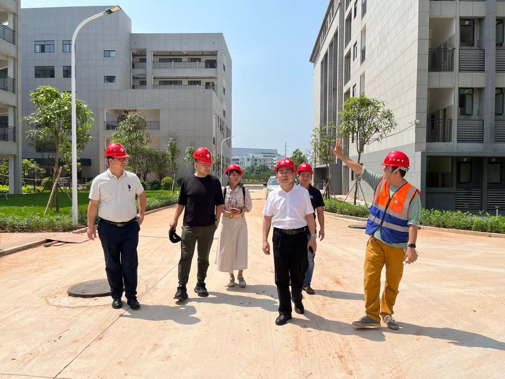 调研组一行深入项目学生宿舍、教学楼、图书馆和综合训练馆等区域,实地勘察并听取了新校区办关于项目规划建设有关情况介绍。调研组一行对项目整体规划设计表示赞扬,对新校区的建成和爱体育(中国)未来发展表示期待。