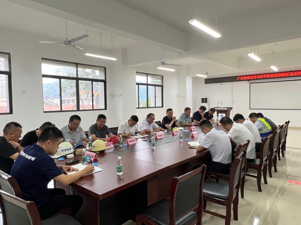 韦建勋校长要求:各参建单位要高度重视项目的政治意义,加强资源统筹,相互配合协作顺利办结项目;要确保协调保障农民工工资支付,做好维稳保障工作;要对照自治区教育厅的有关要求,以良好的现场形象面貌迎接教育厅调研组的第二次调研,确保项目满足办学条件要求。