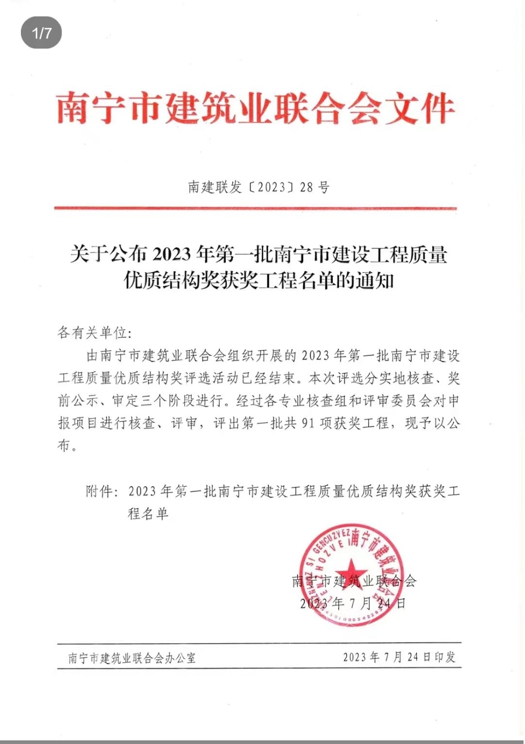 2023年7月24日,南宁市建筑业联合会公布了2023年第一批南宁市建设工程质量优质结构奖获奖工程名单,爱体育电子官方网站相思湖校区项目(16#综合训练馆、17#篮球馆、18#游泳馆)工程在列。