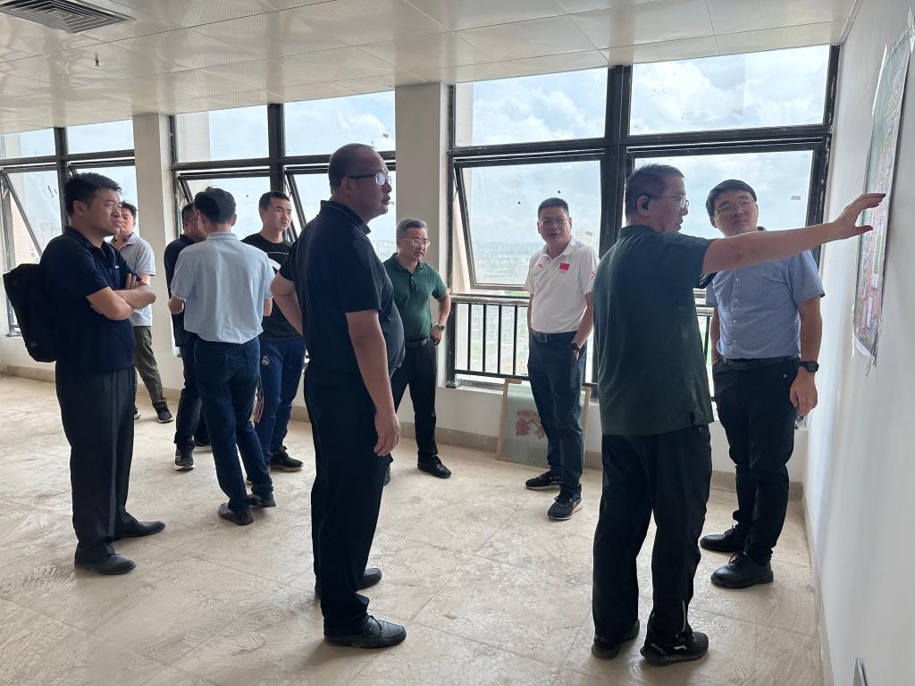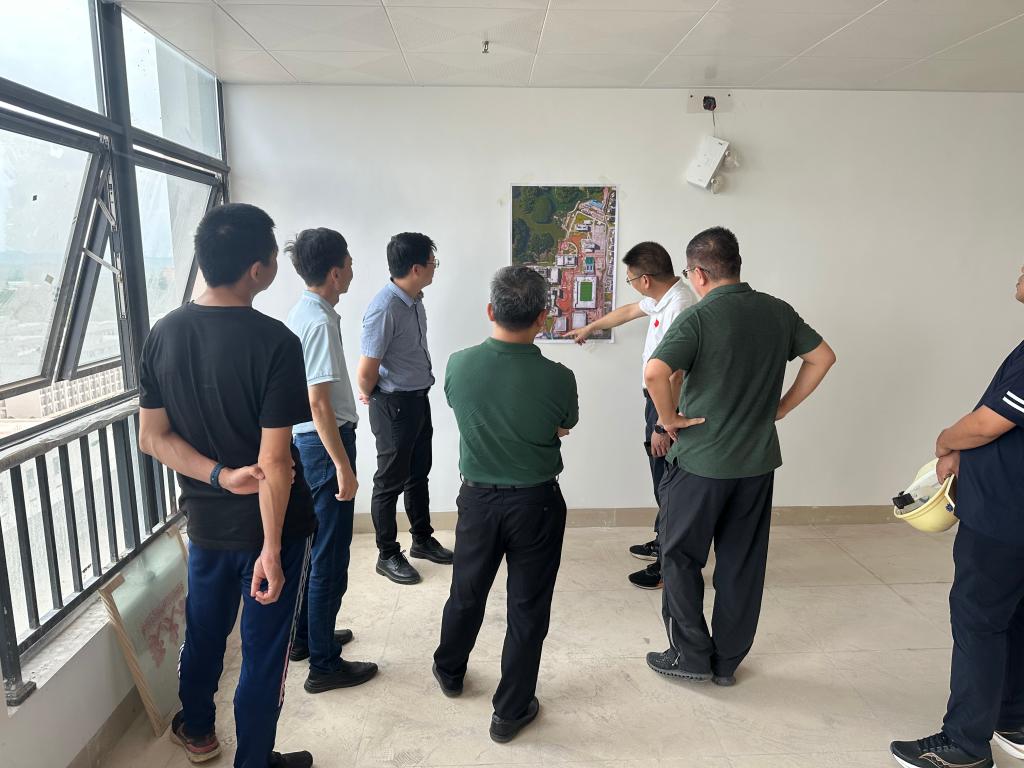 贾松林组长一行到行政办公楼十四层鸟瞰项目整体形象进度,听取了项目当前推进情况,以及第一次调研后已开展工作和项目攻坚计划等有关情况的汇报,详细询问了项目本年度进度目标、资金缺口及其落实情况,并与参建各方就项目推进遇到的难题进行了深入讨论。调研组表示,项目要克服严峻形势,迎难而上,总承包单位要发挥央企责任担当,统筹协调解决影响项目推进的瓶颈问题;要明确方向,落实任务,尽可能缩短后续工作的周期,为争取第四批国债奠定坚实基础;要统一思想,尽早谋划,合理安排资金到位的工序作业,倒排工期任务,圆满完成建设体专新校区的历史任务。