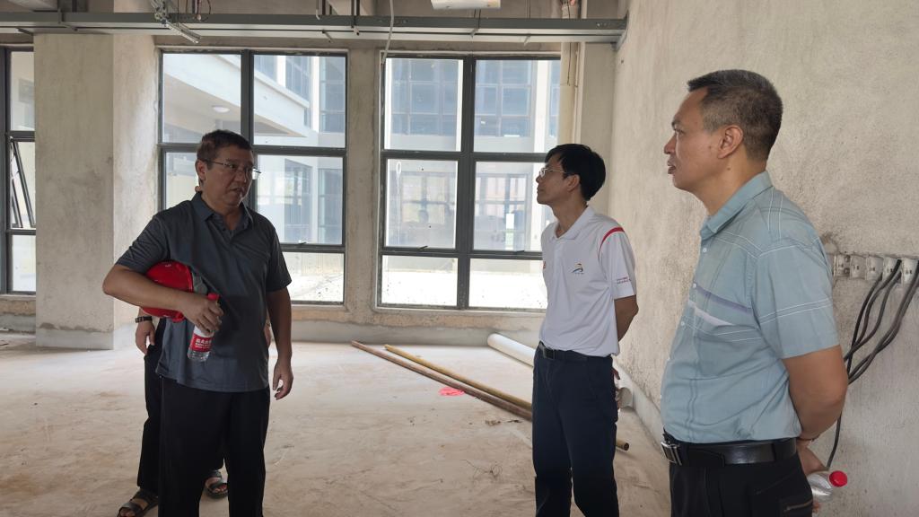 7月19日,爱体育电子官方网站纪委书记罗黎造和副校长黎胜到相思湖校区项目进行全面和深入的调研督查工作,新校区办、搬迁办、后勤处陪同调研,此次调研工作旨在了解项目的建设进度、搬迁工作及二装实施推进,保障各项重点工作能够安全、高效推进。