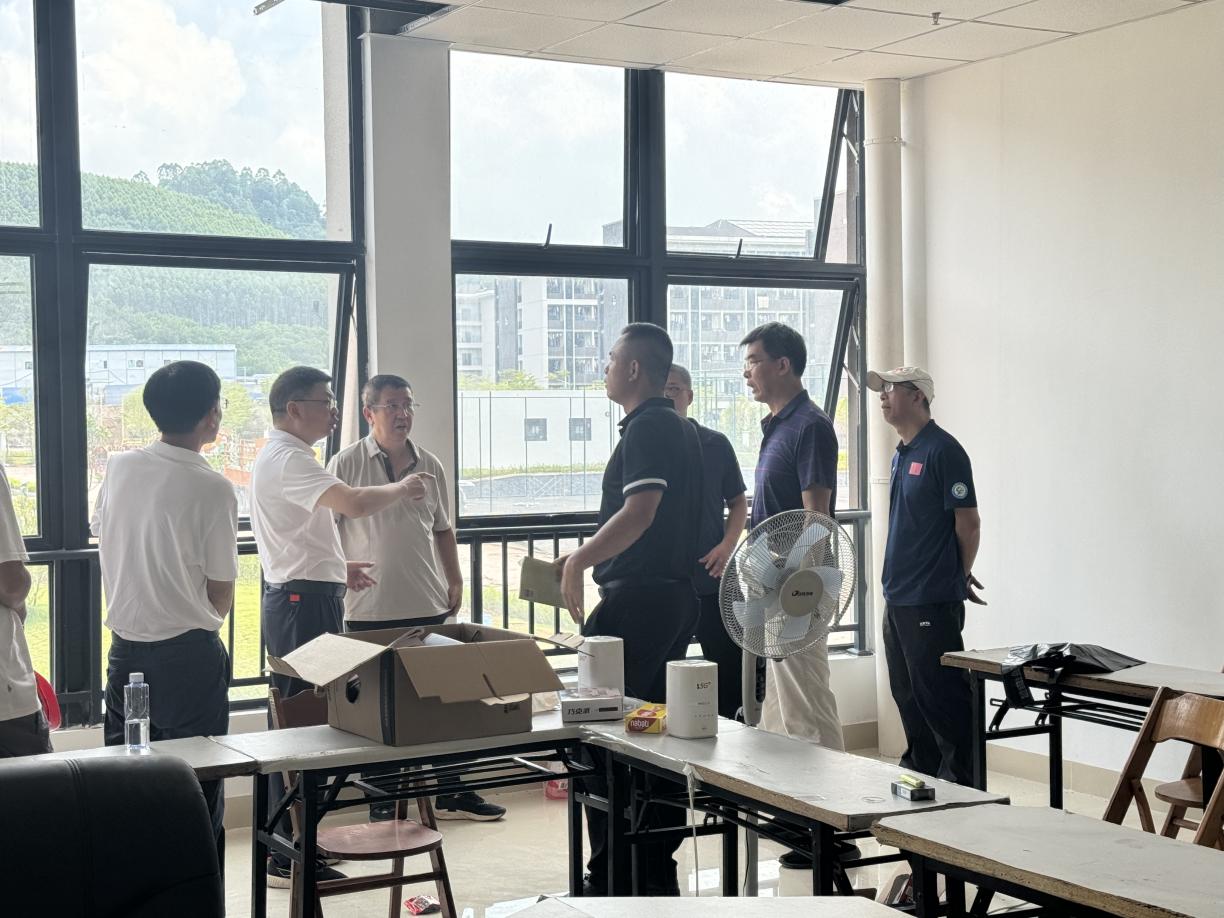 7月21日,爱体育电子官方网站韦建勋校长、黎胜副校长与相思湖校区项目建设管理办公室、相思湖校区搬迁办公室、党政办公室、教务科研处、后勤保卫处、审计与质量管理处等部门的负责人一同视察新校区建设进展及各部门“二装”进度。