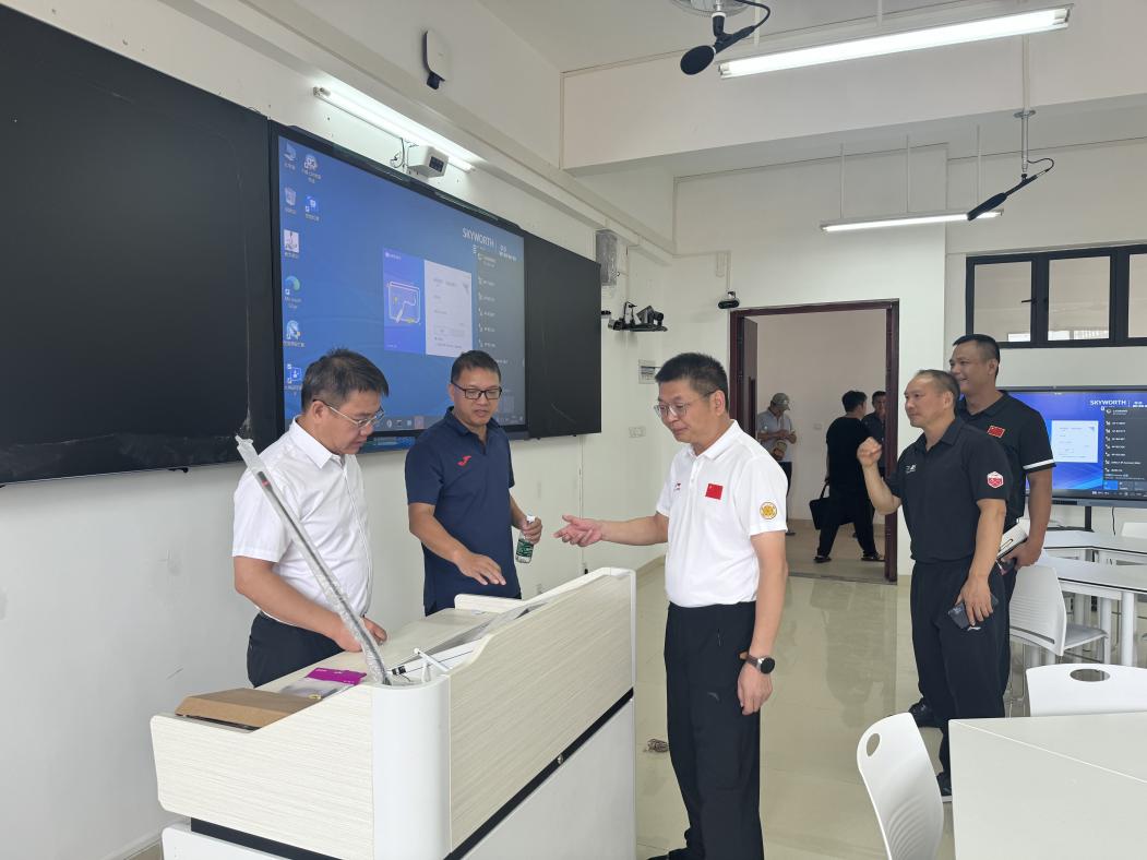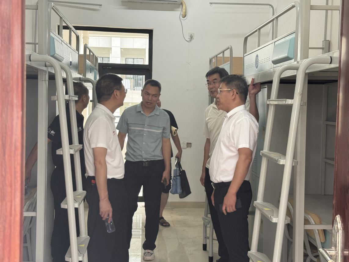 调研组一行人一同前往现场教学楼、学生宿舍、食堂等校园关键区域参观。随后在项目会议室开展座谈,韦建勋校长详细介绍爱体育(中国)的搬迁工作,表示爱体育(中国)学生行李、行政人员办公用品及家具设备已经搬迁至新校区存放,开学前各项工作正井然有序进行。同时爱体育(中国)已建立健全开学前各项工作协调机制和应急预案,以确保秋季入驻的安全顺利。