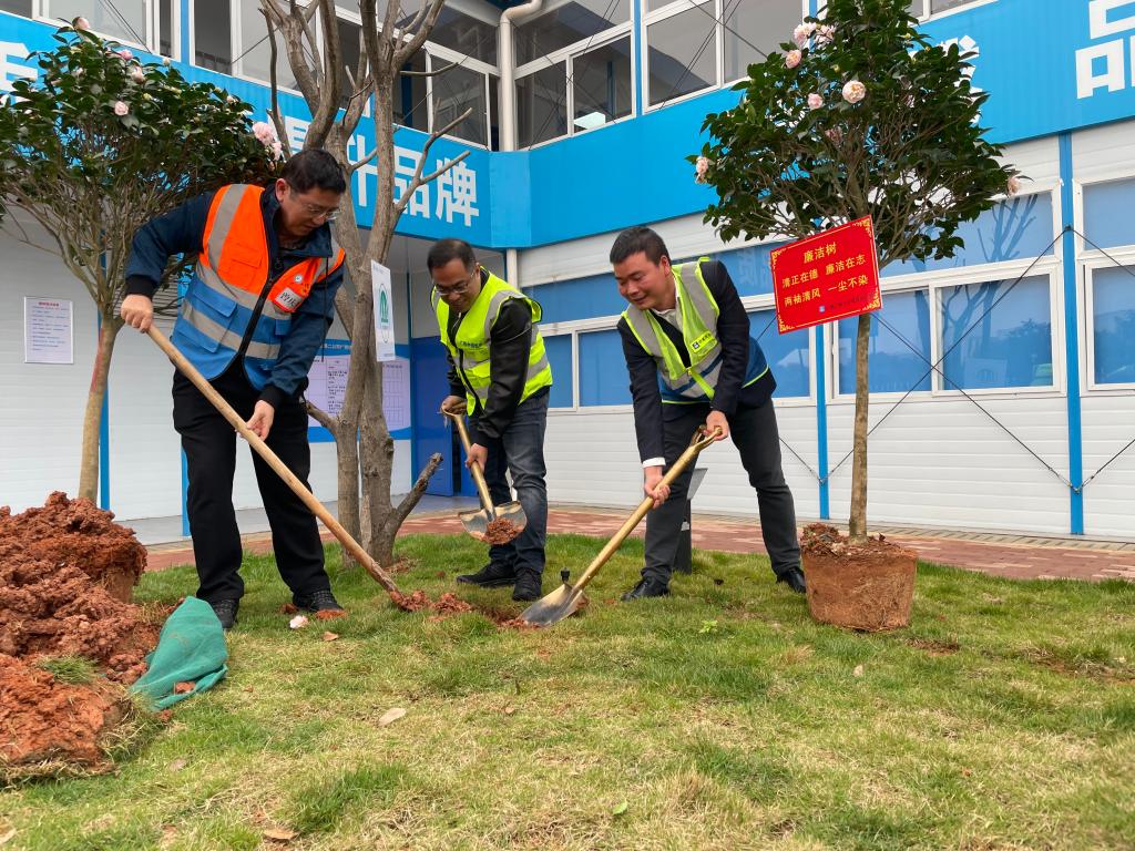 通过本次植树活动,不仅提升了项目团队成员之间的默契,增进了团结,进一步提高保护生态环境意识,而且还为新校区项目工地现场增添了新绿。