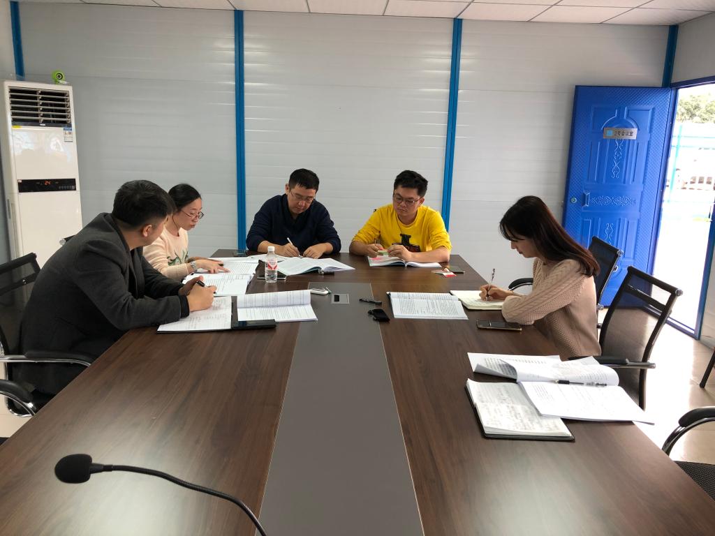 (二)12月2日,新校区建设管理办公室在项目现场第二会议室组织召开项目管理办公室工作会议,会议主要内容是:重新全面梳理合同,分析排查风险隐患并研究防范措施。会议首先由曾庆光主任介绍工程总承包合同存在的主要风险隐患;黄民睿副主任从合同协议书、通用合同条款和专用合同条款方面梳理合同内有关工程技术方面的矛盾点和隐患点;潘莹副主任梳理合同内有关采购、资金支付、签证等方面存在的风险,全体人员对本次会议梳理出来的合同隐患进行分析讨论。(附图4)