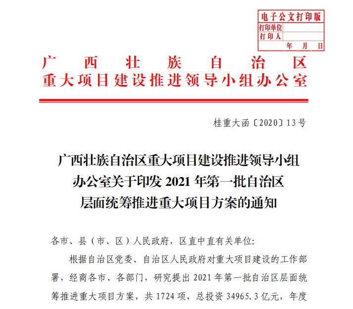 (十六)12月25日,广西壮族自治区重大项目推进领导小组办公室下达了2021年第一批自治区层面统筹推进重大项目方案的通知(桂重大函【2020】13号),将相思湖校区项目列入2021年第一批自治区层面统筹推进重大项目(续建)推进责任表,要求2021年要完成宿舍楼、教学楼、食堂主体施工工作,同期开展图书馆、学术交流中心、行政办公楼主体施工工作。(附图17)