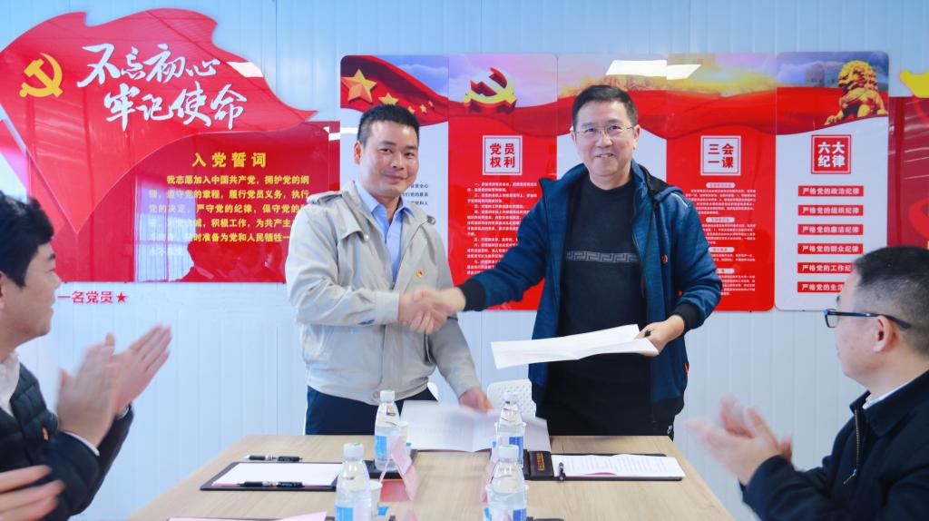 (六)12月9日,中共爱体育电子官方网站后勤设备管理处支部委员会与中共中建三局二公司广西体专项目支部委员会互联共建启动签约仪式在相思湖新校区项目工地党员活动室召开,爱体育电子官方网站党委副书记李爱民、中建三局第二建设公司西部公司党委副书记、工会主席龚勋出席会议并讲话。后勤设备管理处党支部、中建三局二公司广西体专项目党支部党员代表同志等参加了活动。(附图8)